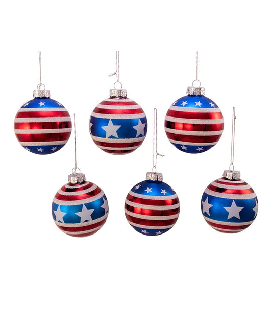 Red,White,Blue Stars & Stripes Glass Ball Ornament 6PC Set