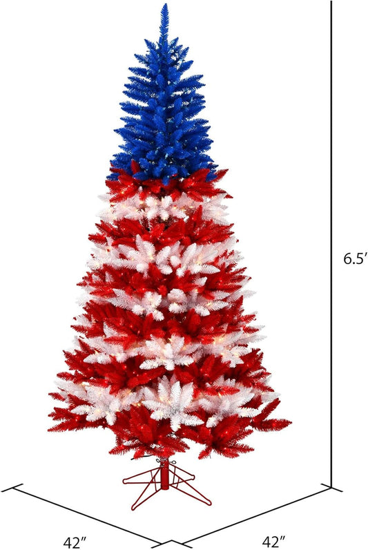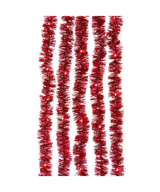 6.5' 100-Light Red Iridescent Tinsel With Red Superbright LED Cascade Light