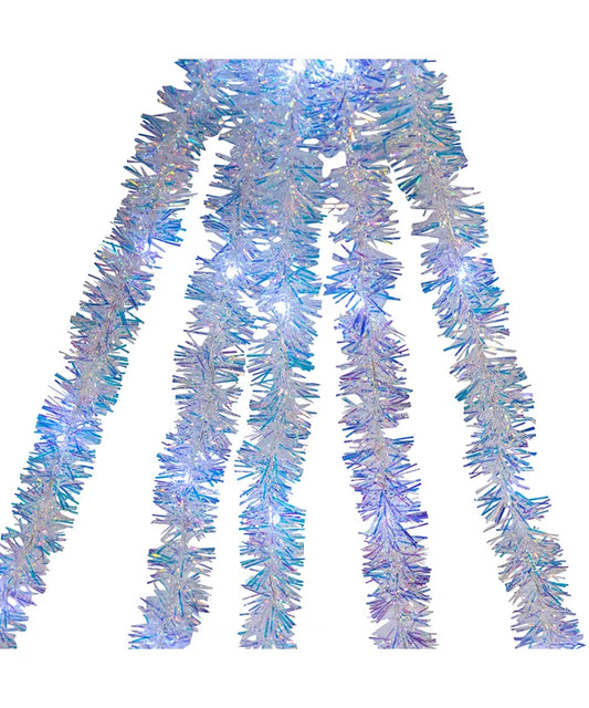6.5' 100-Light Silver Iridescent Tinsel With Cool White Superbright LED Cascade Light