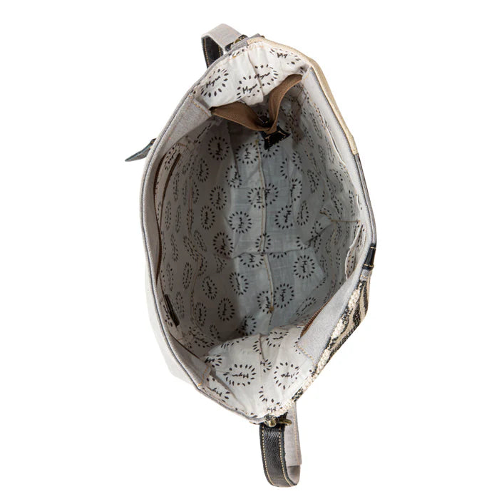 This eclectic shoulder bag is the perfect mix of bold style and practicality. Featuring a striking chevron pattern, contrasting neutral tones, and a rustic star patch detail, it’s designed to stand out. Leather accents and a sturdy strap provide durability and comfort. Ideal for everyday use or as a statement piece, this bag offers plenty of space for your essentials while showcasing your unique style. Embrace individuality with this versatile, boho-inspired accessory!