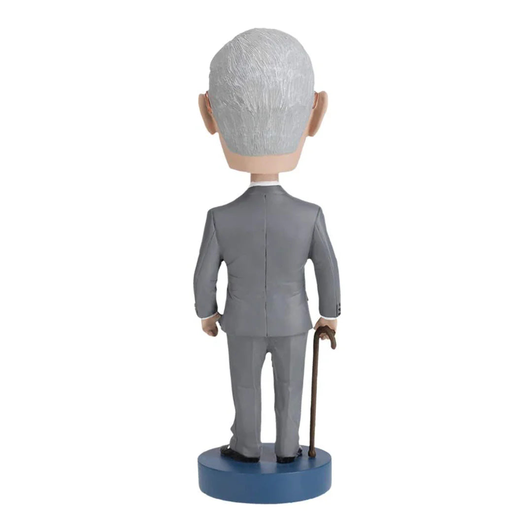 This bobble head is approximately 8" tall, hand-sculpted and painted