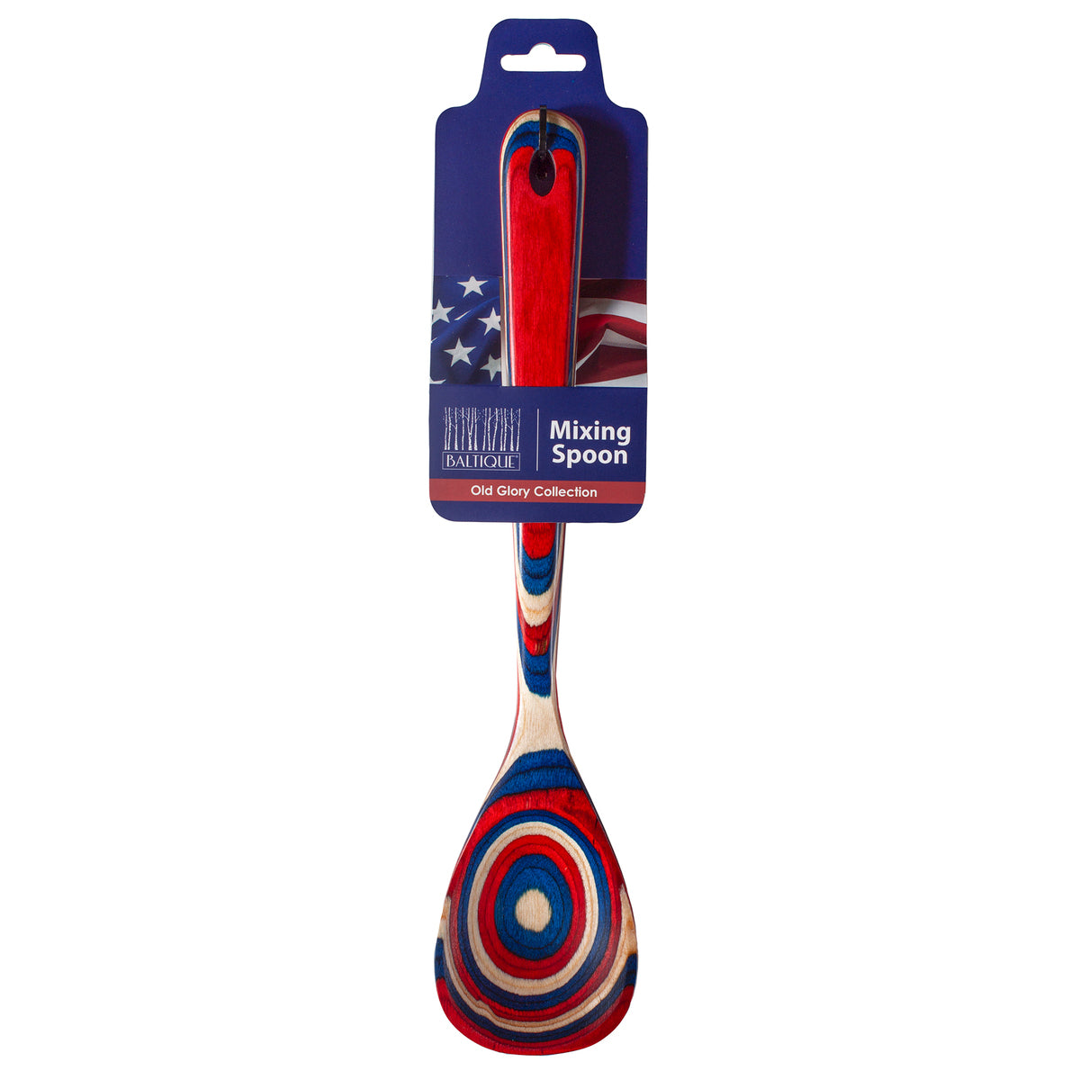 Add a patriotic touch to your kitchen with the Old Glory Mixing Spoon! Crafted from durable, layered wood, this stunning spoon features a vibrant red, white, and blue design that brings a pop of color to your cooking experience. Made from durable layered wood for long-lasting use plus comfortable grip for easy mixing, stirring, and serving. Inspired by the American flag, it's perfect for festive occasions or everyday use. Whether you're preparing meals for a backyard barbecue, a holiday gathering, or simply want to showcase your American pride, this mixing spoon is the perfect addition to your kitchen essentials.