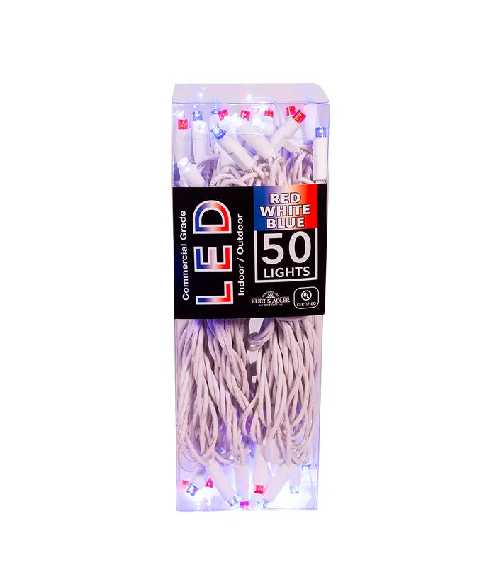 This strand of 50 red, white, and blue LED lights is the ultimate way to celebrate patriotism, create a festive atmosphere, or add a vibrant pop of color to any occasion. With alternating red, white, and blue bulbs, this 25.5-foot strand delivers a stunning display of color that’s perfect for Independence Day, national celebrations, or any event where you want to show your American spirit. Designed for both indoor and outdoor use, the weather-resistant construction ensures durability in various conditions, from sunny days to rainy nights. Whether wrapping around trees, decorating a patio, or illuminating windows and fences, this versatile strand adds a dynamic and patriotic touch to any space.