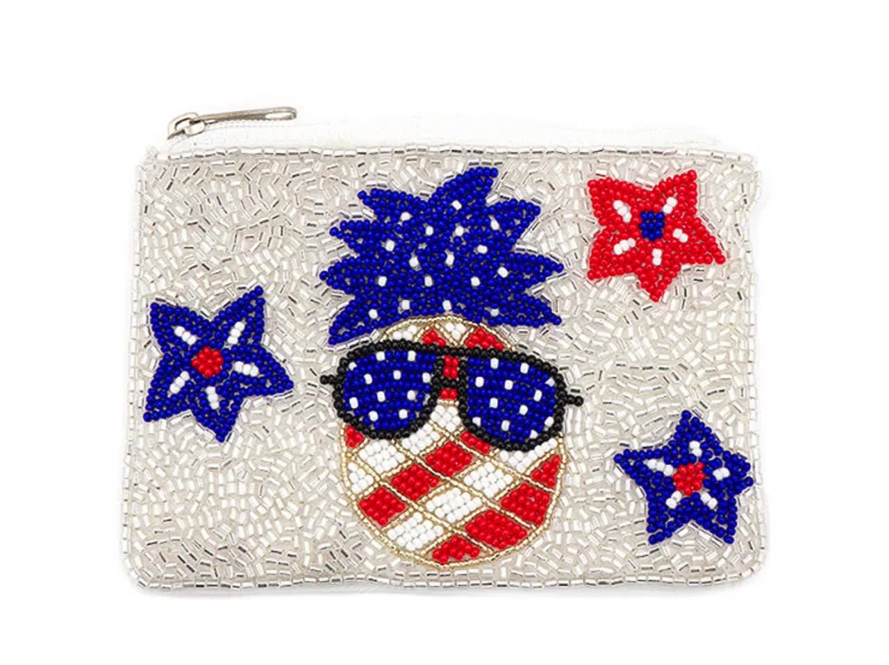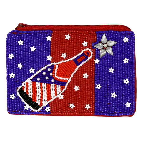 Add a touch of festive flair to your accessory collection with our unique patriotic beaded coin purses! Featuring a variety of fun designs—choose from a sparkling pineapple, a pair of bold patriotic boots, chic heart-shaped glasses, or a celebratory champagne bottle. Each purse is handcrafted with intricate red, white, and blue beadwork, combining style and functionality. Perfect for holidays, parties, or as a thoughtful gift, these coin purses are a fashionable way to showcase your love for the USA!